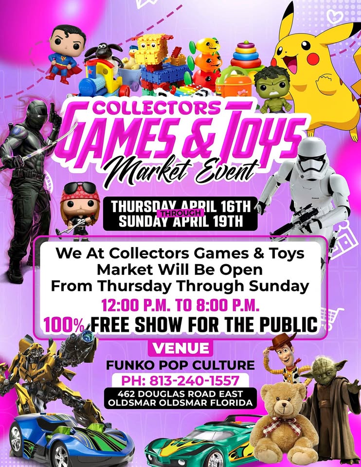 Coming soon Collector's Toys & Games Market every Thursday through Sunday 12pm to 8pm If you're a vendor please contact us will be booking shows very shortly & Events coming shortly please contact us so we can keep your name business so when we get this up and running we will contact you back this e